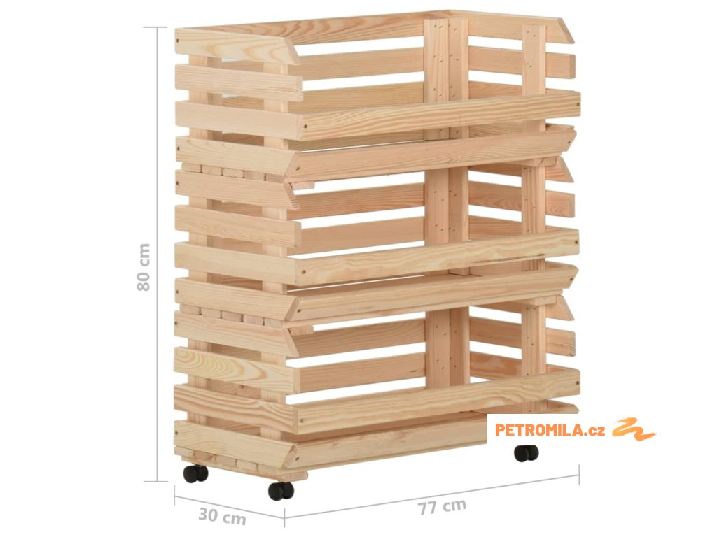 Vozík na zeleninu 77 x 30 x 80 cm masivní borové dřevo