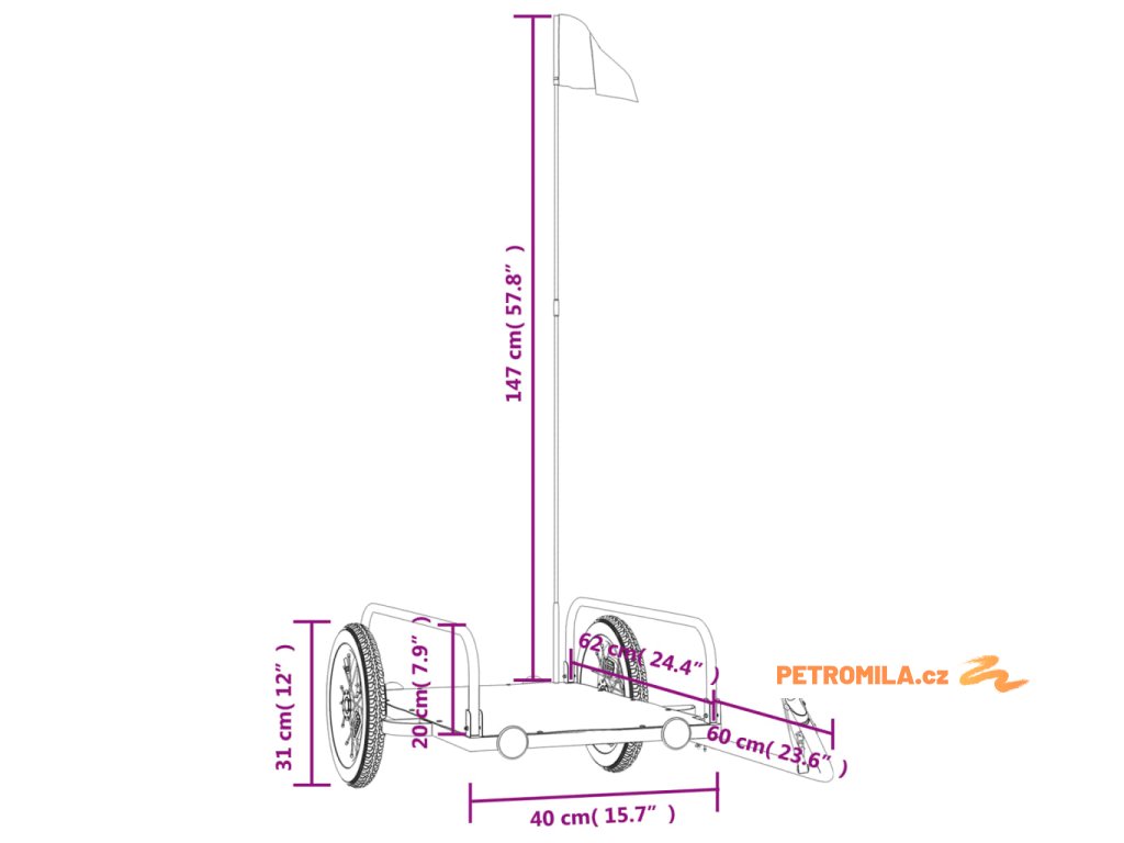 - Robustní materiál: Železo je pevný a tvrdý materiál. Je to oblíbený materiál pro průmyslové a nábytkářské konstrukce. Tento přívěsný vozík za kolo je vyroben ze železa a je velmi robustní a odolný.