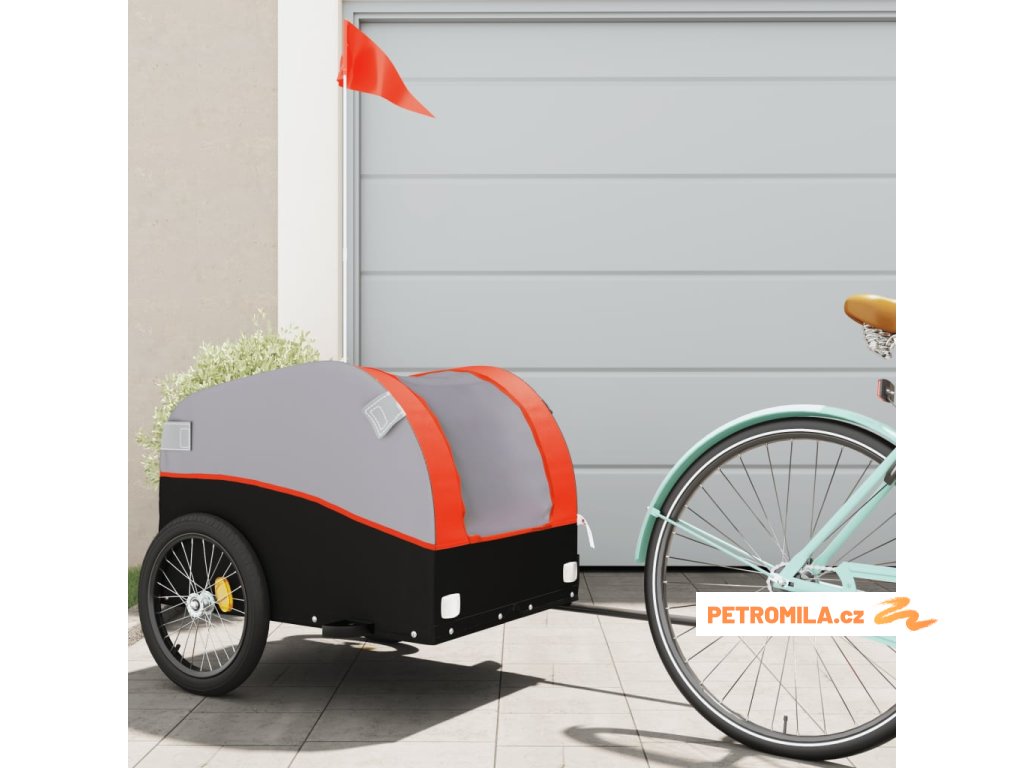 Vozík za kolo černý a oranžový 45 kg železo