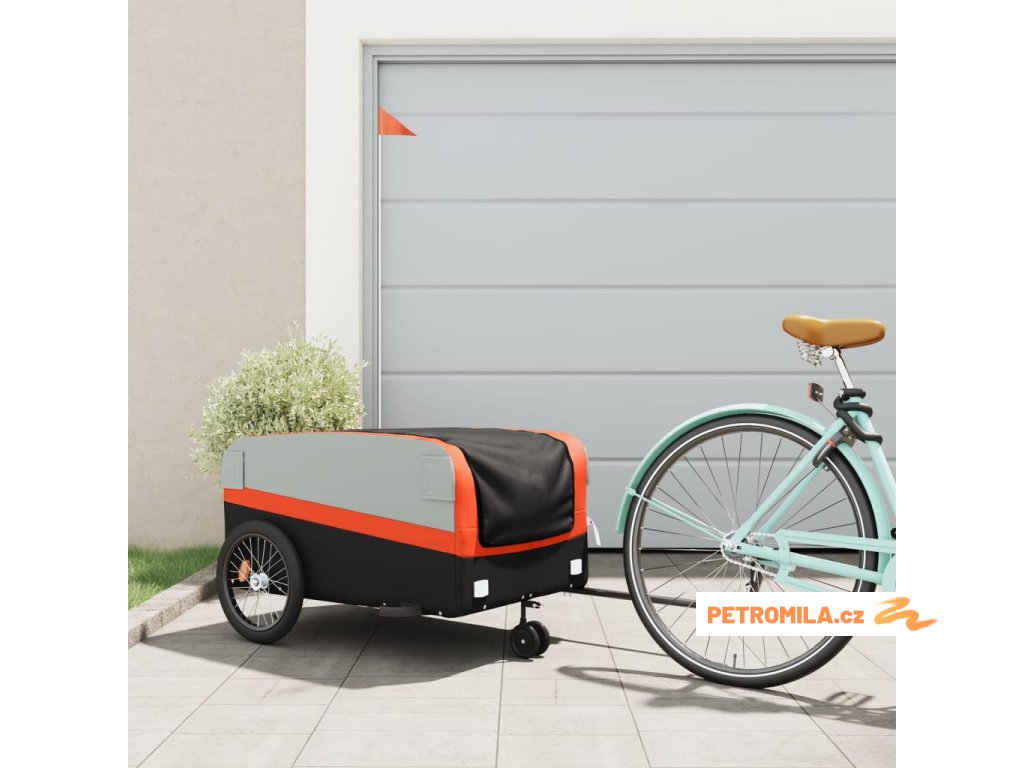 Vozík za kolo černý a oranžový 45 kg železo