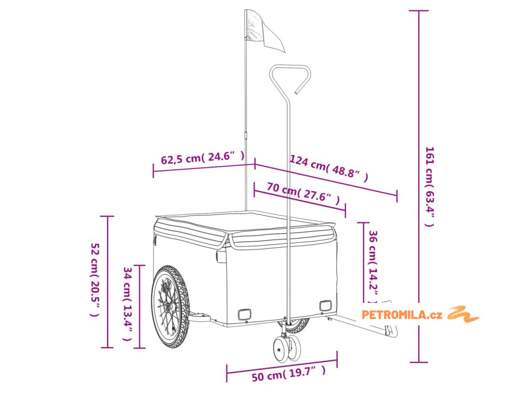 - Robustní materiál: Železo je pevný a tvrdý materiál. Je to oblíbený materiál pro průmyslové a nábytkářské konstrukce. Tento přívěsný vozík za kolo je vyroben ze železa a je velmi robustní a odolný.