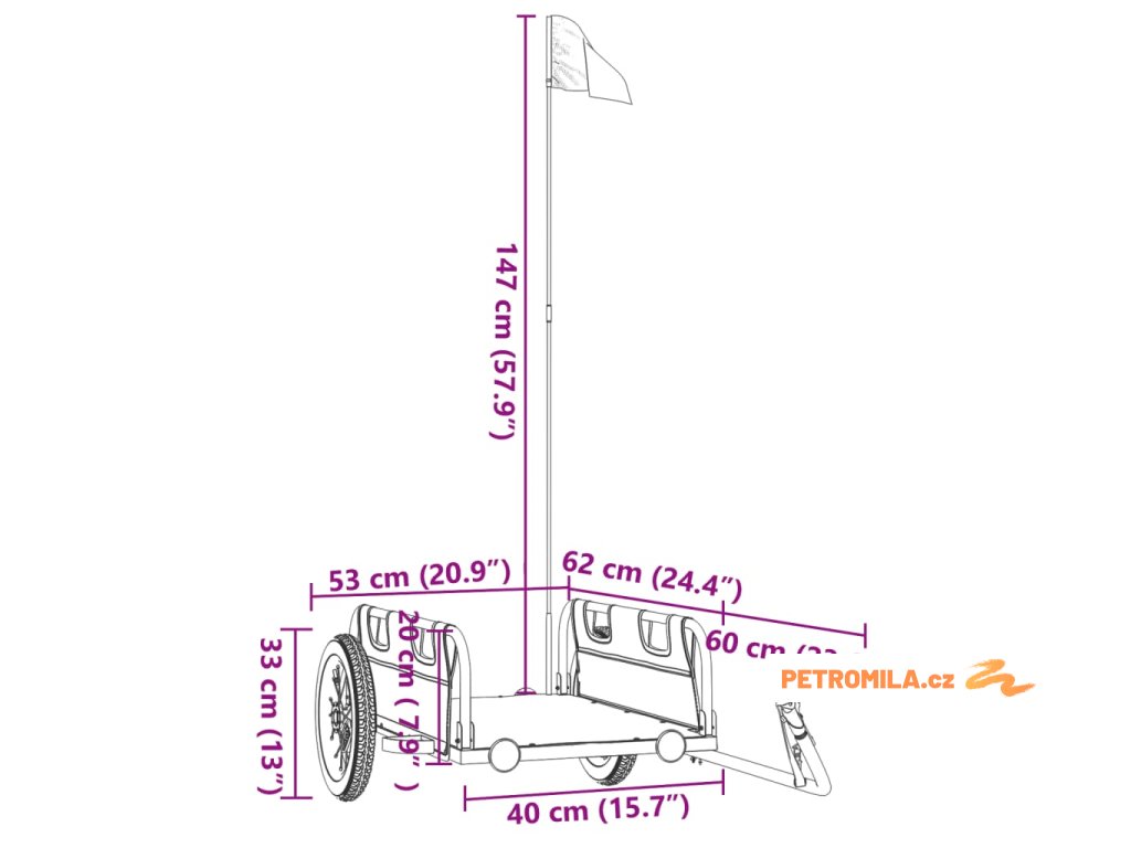 - Bezpečná jízda: Vozík má dvě velká kolečka, která umožňují hladkou jízdu v různých terénech. Odrazky na zadní straně zajišťují viditelnost ve tmě, navíc vlajka pomůže zvýšit bezpečnost provozu.