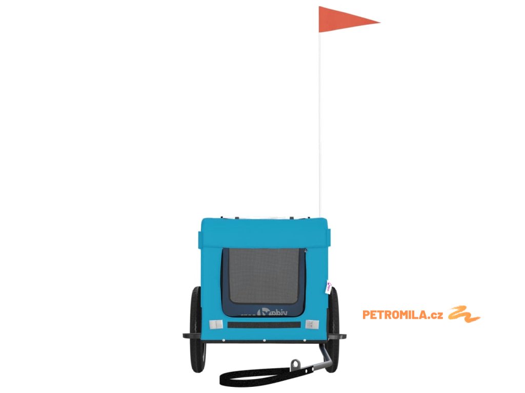 - Praktický přívěs za kolo: Tento vozík za kolo je vyroben z oxfordské tkaniny a je vybaven PVC krytem, který chrání vašeho domácího mazlíčka před mrholením. Dno vozíku tvoří černá nosná deska, vytvářející pohodlný prostor.