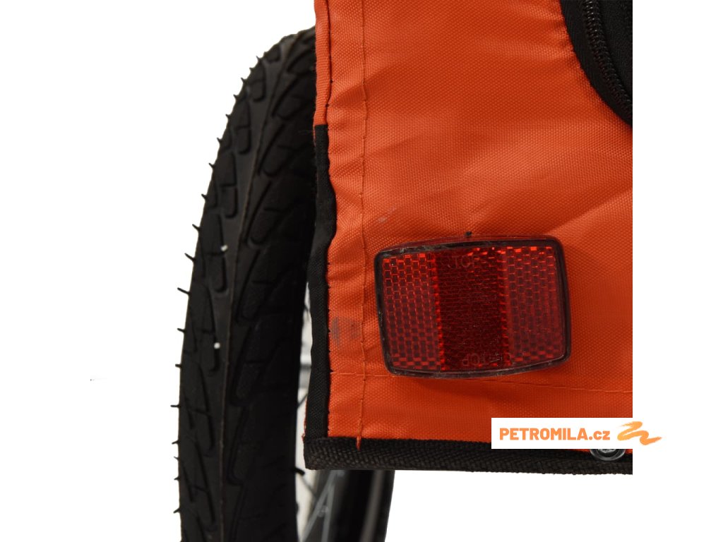 - Bezpečná jízda: Vozík má dvě velká kolečka, která umožňují hladkou a bezpečnou jízdu v různých terénech. Odrazky zajišťují viditelnost ve tmě, navíc vlajka pomůže zvýšit bezpečnost provozu.