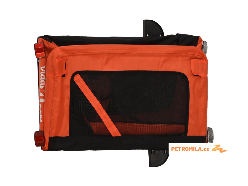 - Praktický přívěs za kolo: Tento vozík za kolo je vyroben z oxfordské tkaniny a je vybaven PVC krytem, který chrání vašeho domácího mazlíčka před mrholením. Dno vozíku tvoří černá nosná deska, vytvářející pohodlný prostor.