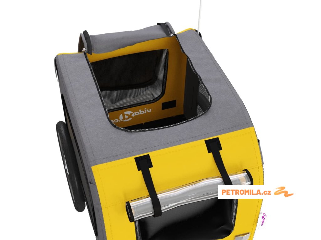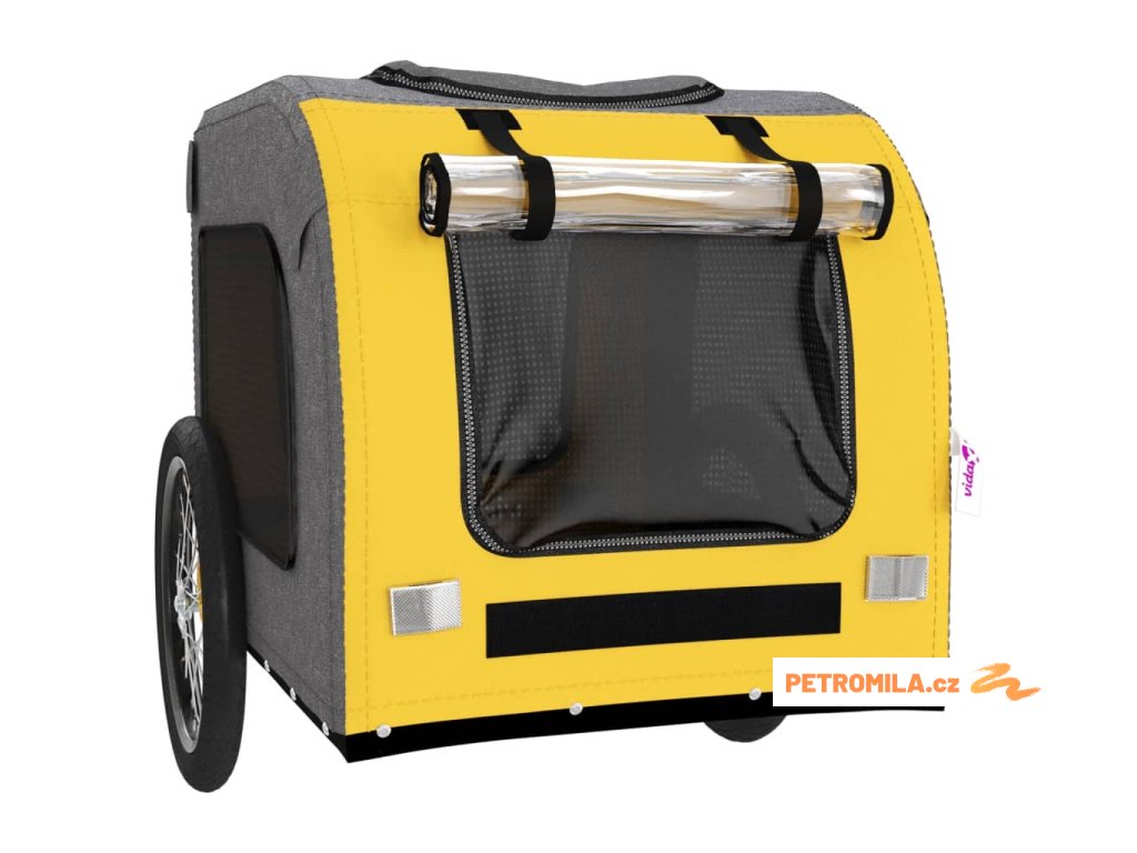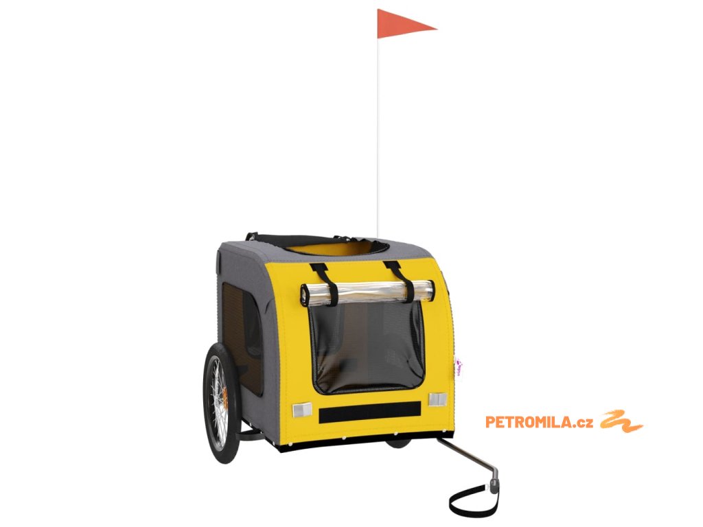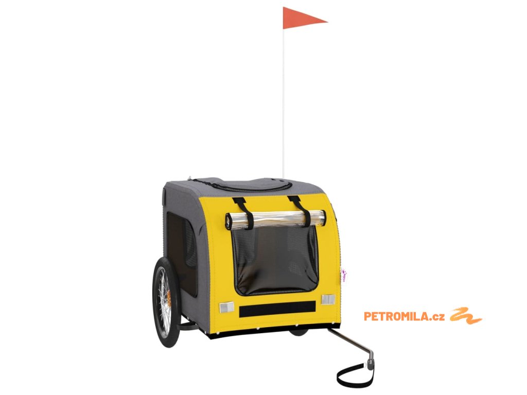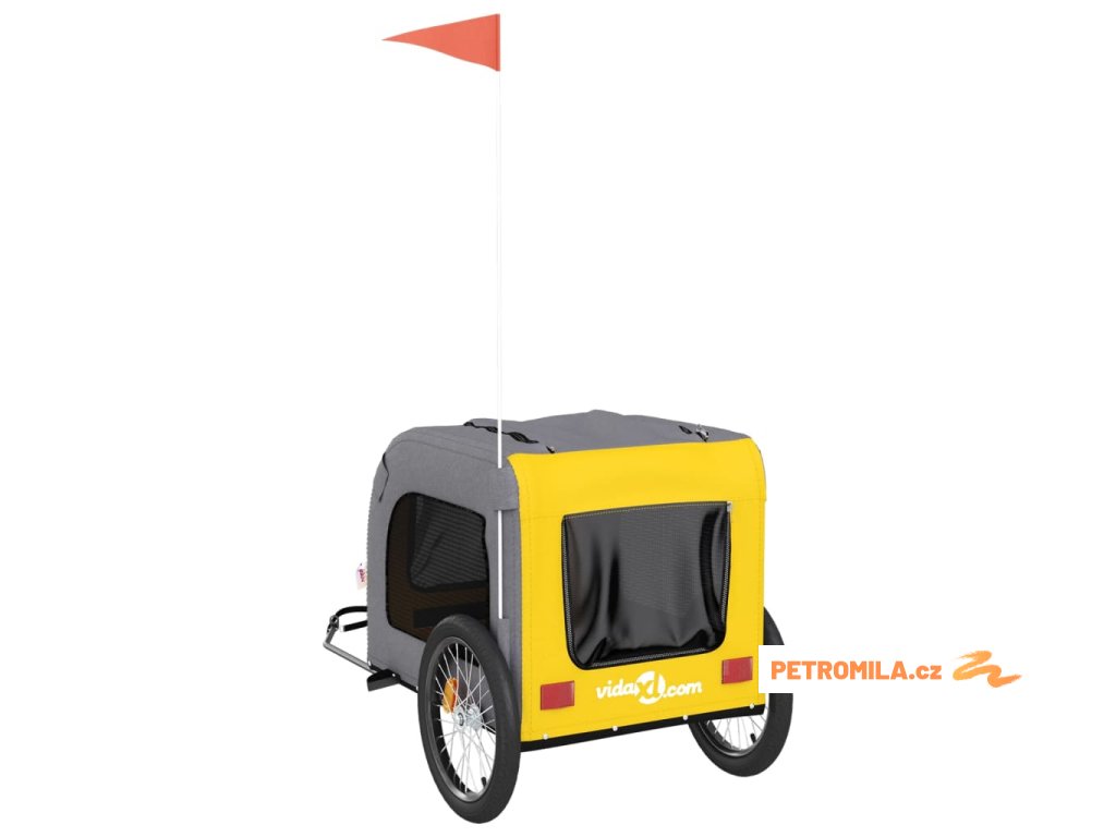 Vozík za kolo pro psa žlutý a šedý oxfordská tkanina a železo