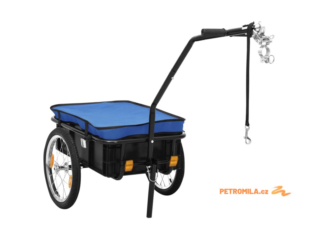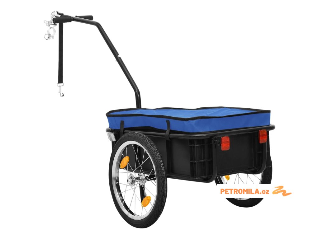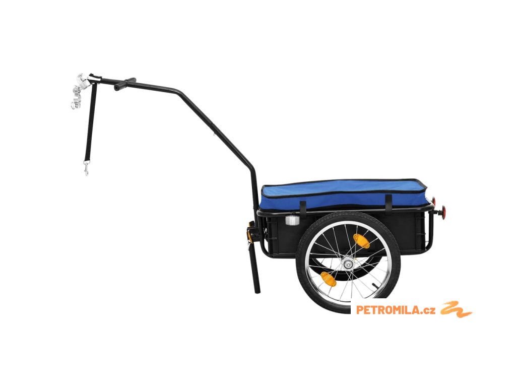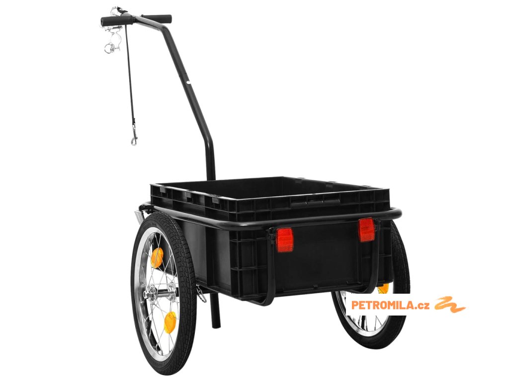 Tento přívěs na kolo má maximální nosnost 50 kg. Je designovaný s kulovou spojkou pro snadné připojení ke kolu. Jelikož je tento vozík vybavený 2 rukojeťmi na oji, můžete ho také používat jako ruční vozík s maximální nosností 70 kg. Skládací stojan vám umožní vozík bezpečně zaparkovat, aniž by hrozilo jeho převrácení.