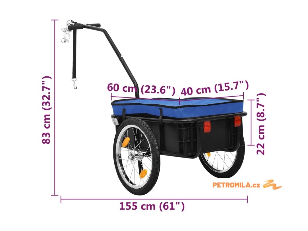- Maximální nosnost: 50 kg (jako nákladní přívěs); 70 kg (jako ruční vozík)