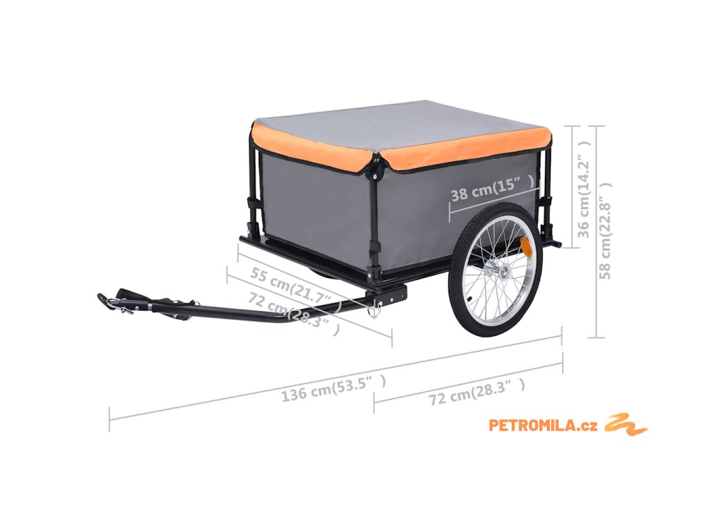 - Celkové rozměry s tažnou tyčí: 136 x 72 x 58 cm (D x Š x V)