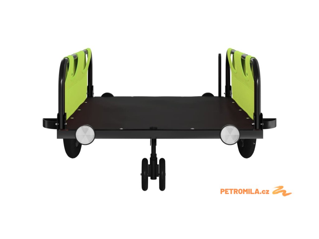 - Bezpečná jízda: Vozík má dvě velká kolečka, která umožňují hladkou jízdu v různých terénech. Odrazky na zadní straně zajišťují viditelnost ve tmě, navíc vlajka pomůže zvýšit bezpečnost provozu.