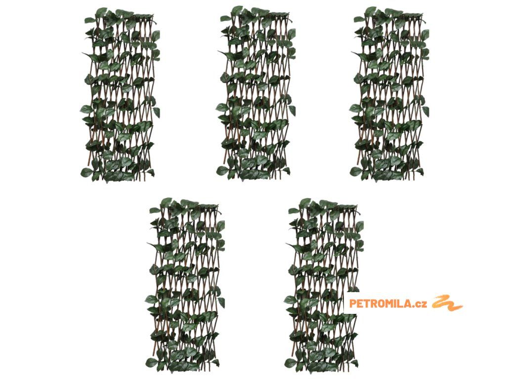 Vrbový trelážový plot 5 ks s umělými listy 180 x 60 cm