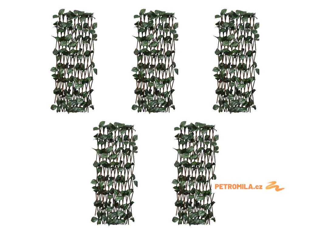 Vrbový trelážový plot 5 ks s umělými listy 180 x 90 cm