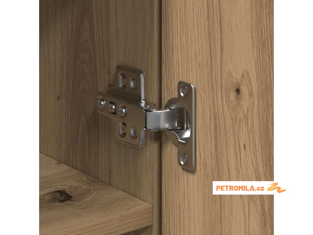 - Funkční prvky: Uvnitř najdete praktické police pro různorodé věci, od nádobí po dekorace. Dveře na pantech se snadno otevírají a umožňují rychlý přístup k vašim věcem. Všechno dohromady dává úložnému prostoru potřebnou organizaci bez ztráty stylu.
