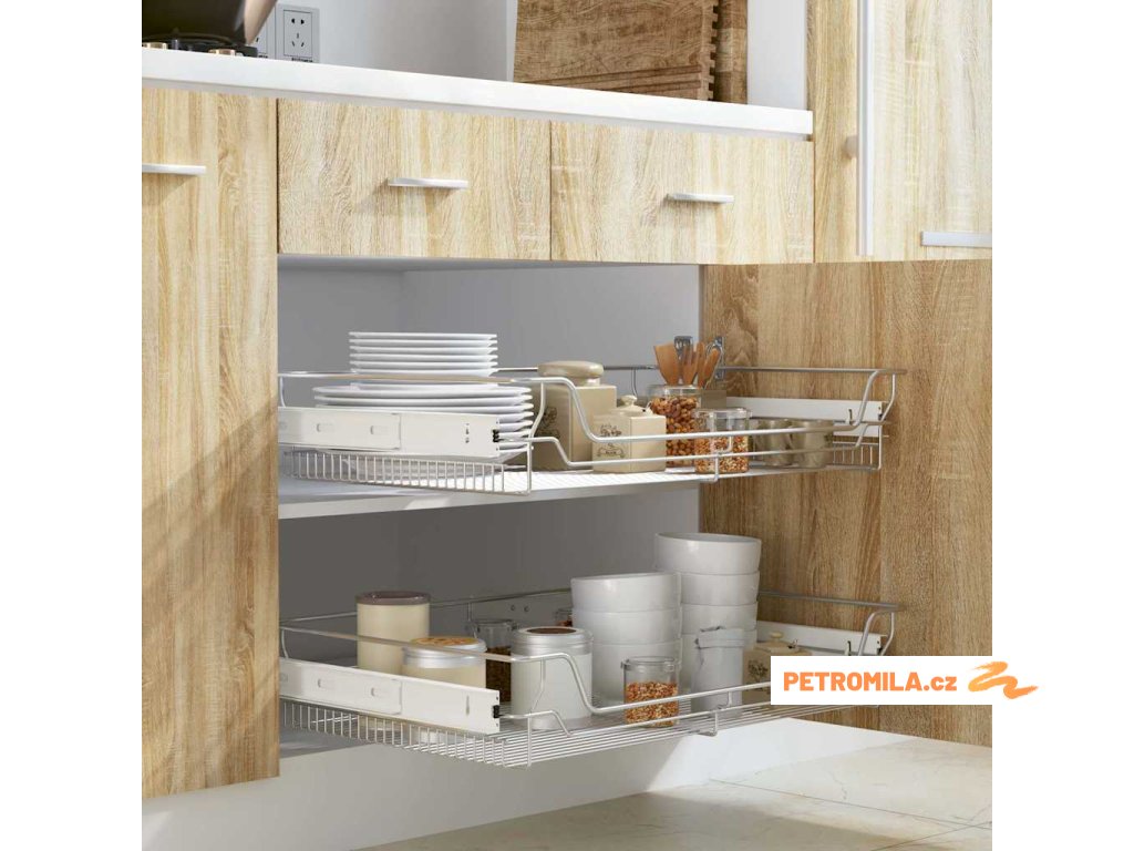 Využijte lépe úložný prostor vaší kuchyně s pomocí těchto snadno namontovatelných a odolných kovových košíků/zásuvek. Ty budou univerzálním doplňkem do vašich kuchyňských skříněk.