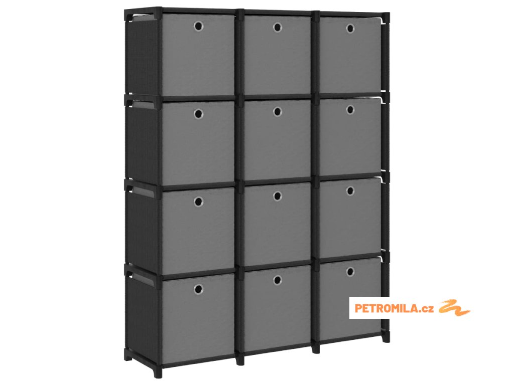 Výstavní police 12 přihrádek s boxy černé 103x30x141 cm textil
