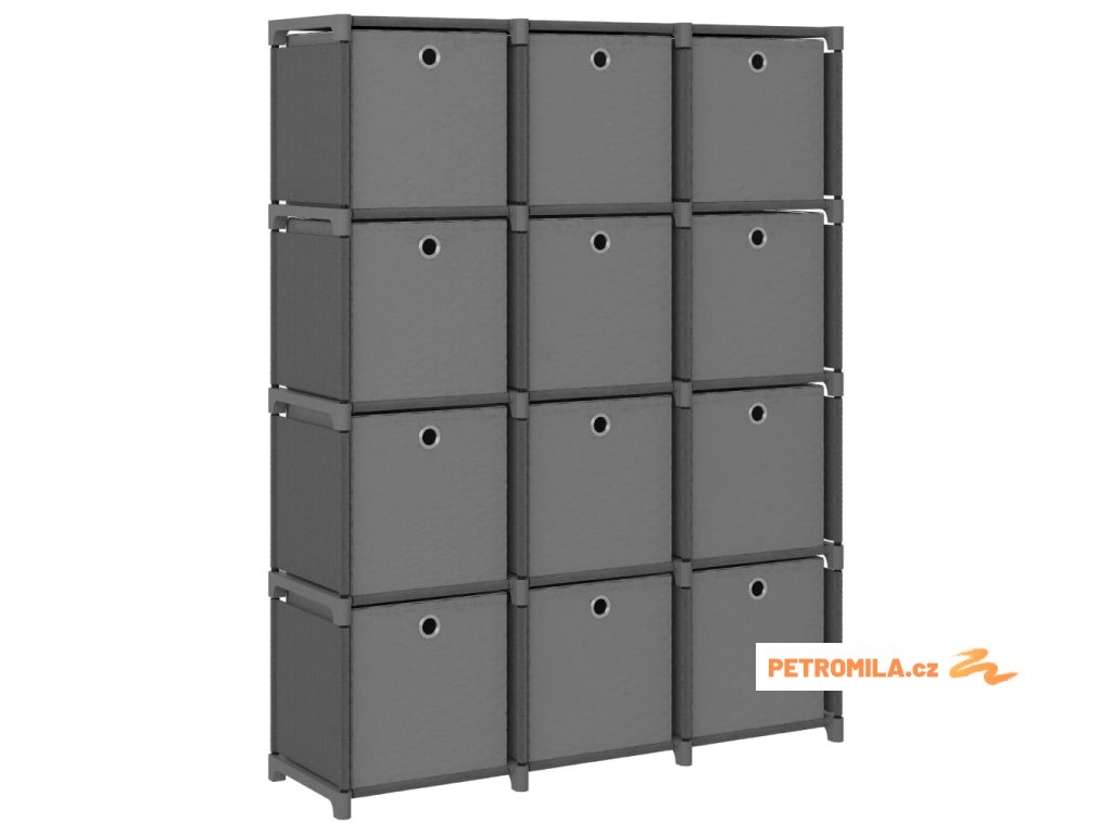 Výstavní police 12 přihrádek s boxy šedá 103x30x141 cm textil