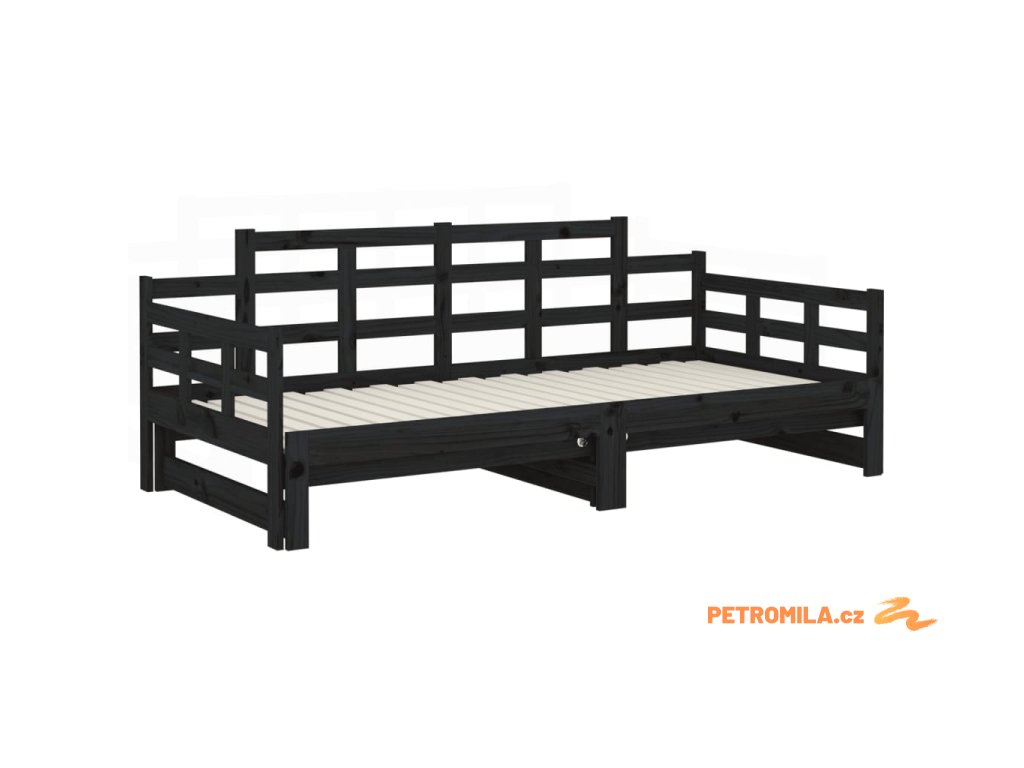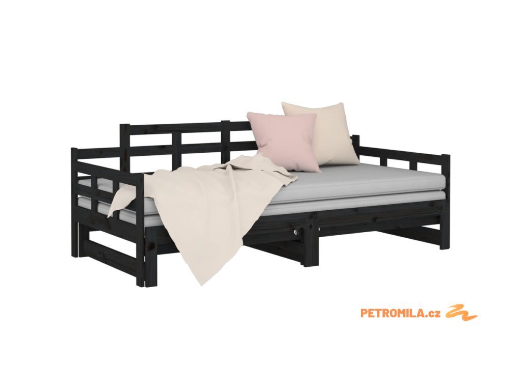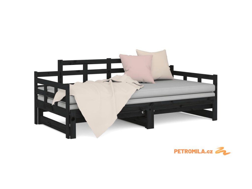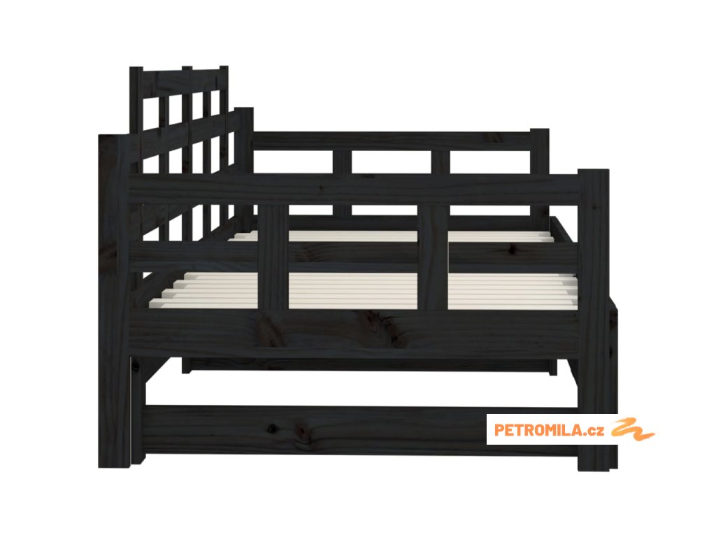 Výsuvná postel černá masivní borovice 2x (90 x 200) cm