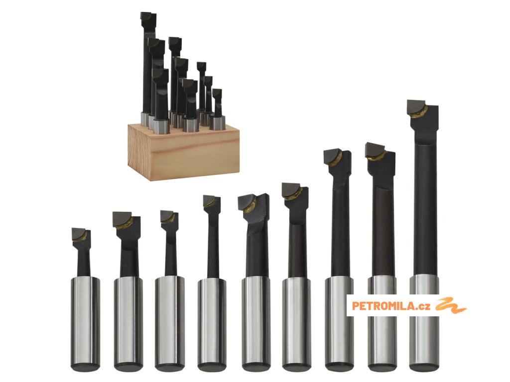 Tato sada je vyrobená z tvrdé legované oceli s vysokou tvrdostí, vysokou přesností a odolností proti korozi. Tyto nože umožňují jak boční, tak čelní řezání. Tuto sadu nástrojů, která má 9 různých velikostí, využijete pro různé vyvrtávací činnosti. Nože můžete bezpečně uložit na místě v dřevěném podstavci.