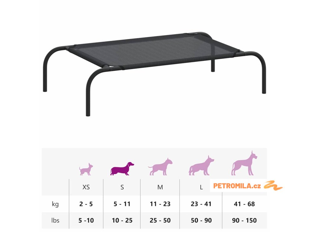 Tento psí pelech má práškově lakovaný ocelový rám, je tudíž značně stabilní a bezpečný. Textilenová síťovina je odolná vůči UV záření a povětrnostním vlivům a vyznačuje se dobrou prodyšností a zároveň napomáhá odpuzování vlhkosti, plísní, houbám, bakterií a zápachu. Vašim psům tak poskytne čistý a hygienický povrch. Textilenová látka se také snadno čistí vlhkým hadříkem. Pelíšek pro psy je lehký a snadno se sestavuje, takže ho můžete používat i při cestování.