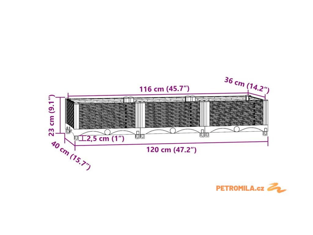 Vyvýšený záhon 120 x 40 x 23 cm polypropylen