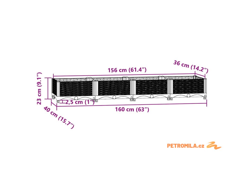 Vyvýšený záhon 160 x 40 x 23 cm polypropylen