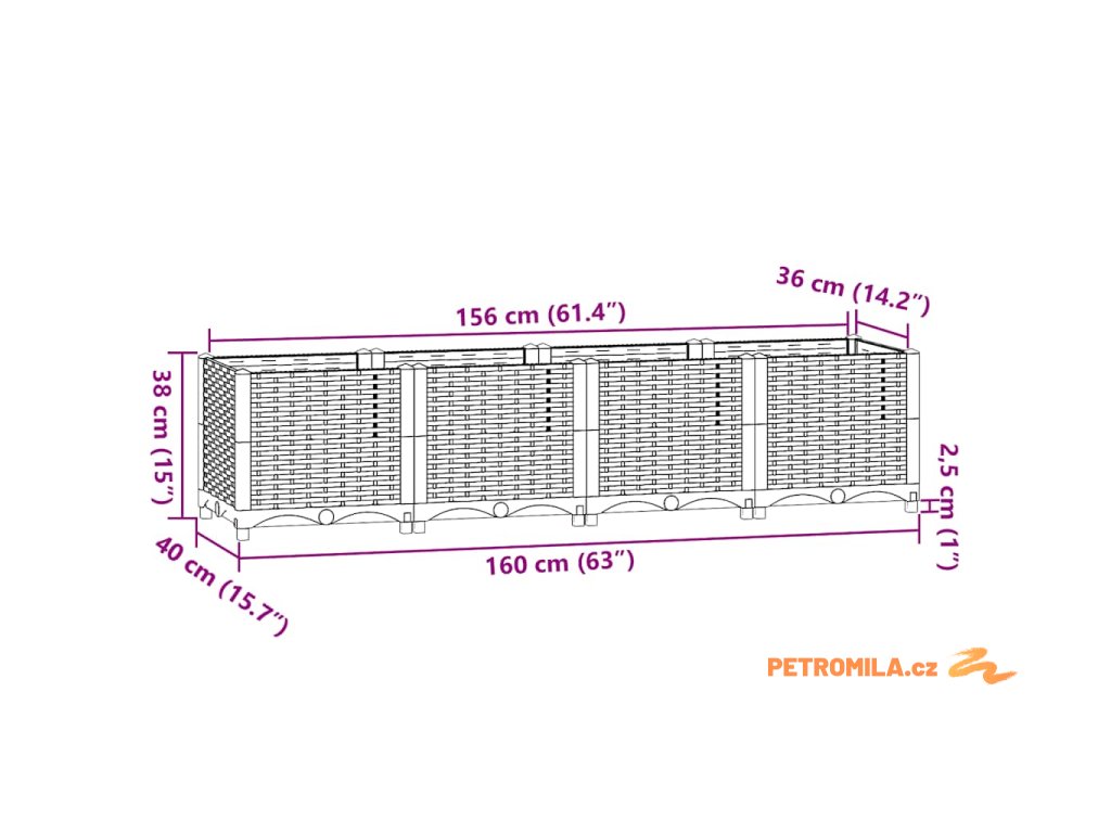 Vyvýšený záhon 160 x 40 x 38 cm polypropylen