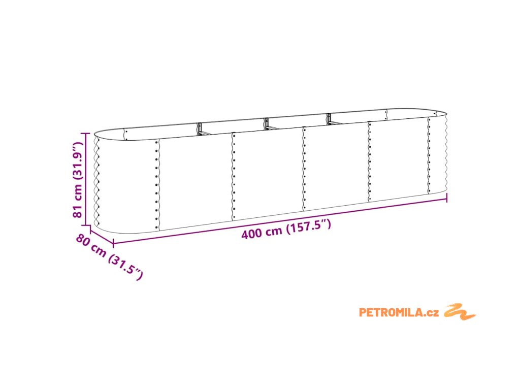 Vyvýšený záhon 400 x 80 x 81 cm pozinkovaná ocel stříbrný