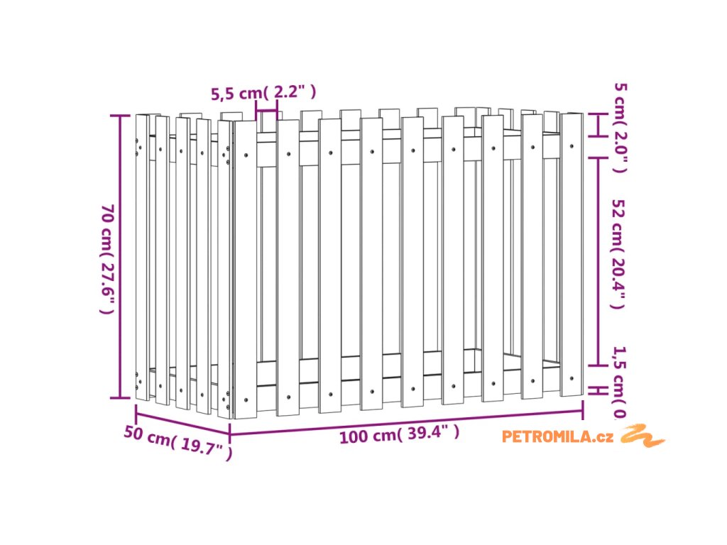 Vyvýšený záhon plotový design 100x50x70 cm masivní douglaska