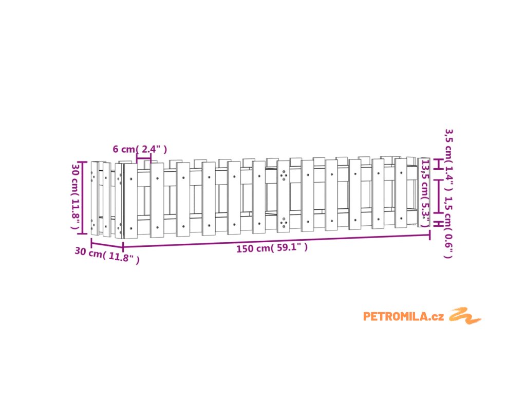 Vyvýšený záhon plotový design 150 x 30 x 30 cm masivní borovice