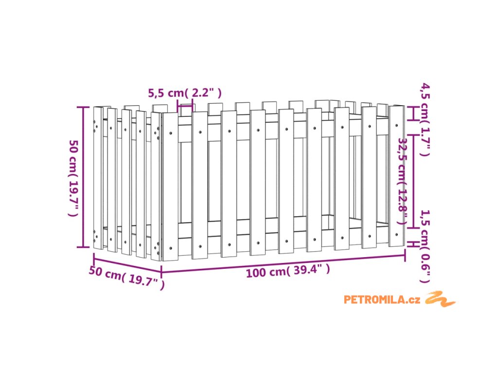 Vyvýšený záhon plotový design černý 100x50x50 cm masiv borovice