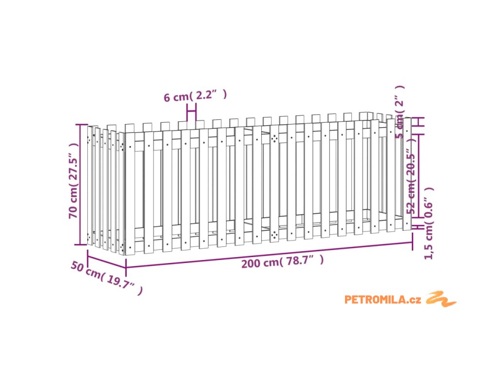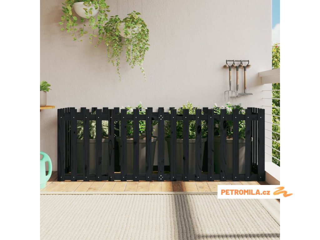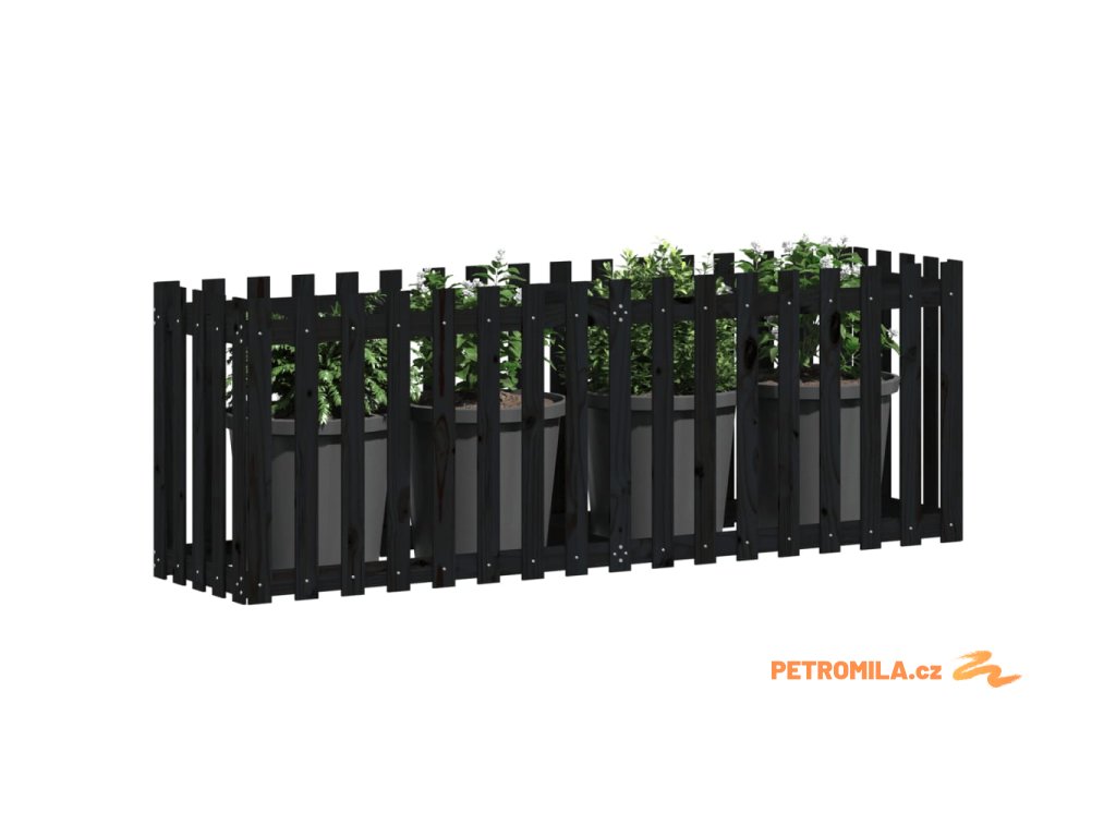 Vyvýšený záhon plotový design černý 200x50x70 cm masiv borovice