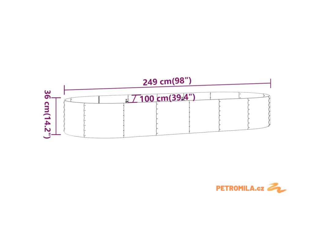 Vyvýšený záhon pozinkovaná ocel 249x100x36 cm šedý