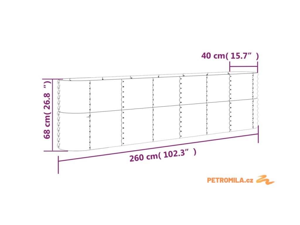 Vyvýšený záhon pozinkovaná ocel 260x40x68 cm zelený