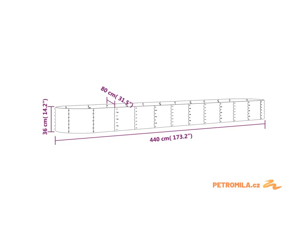 Vyvýšený záhon pozinkovaná ocel 440x80x36 cm stříbrný