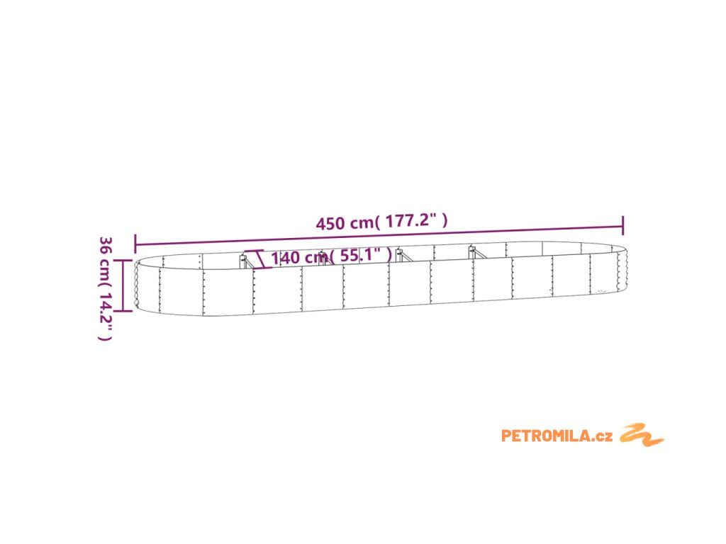 Vyvýšený záhon pozinkovaná ocel 450x140x36 cm antracitový