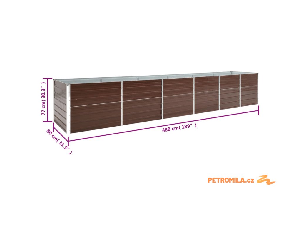 Vyvýšený záhon pozinkovaná ocel 480 x 80 x 77 cm hnědý