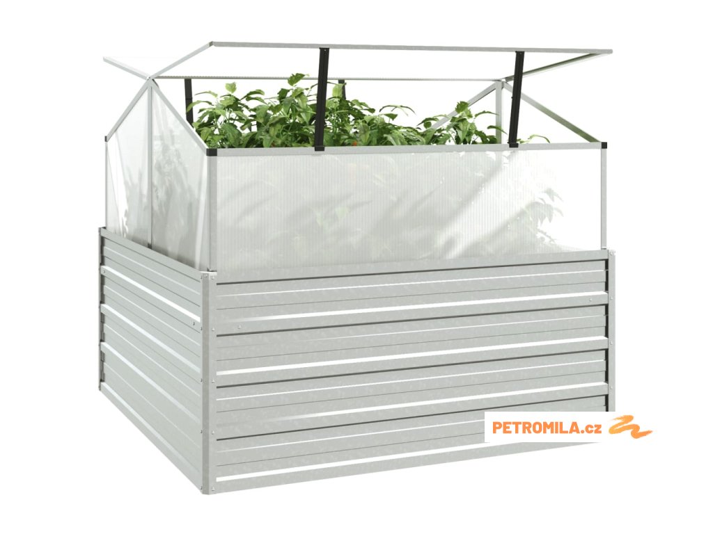 Vyvýšený záhon s pařeništěm 100 x 100 x 85 cm stříbrný