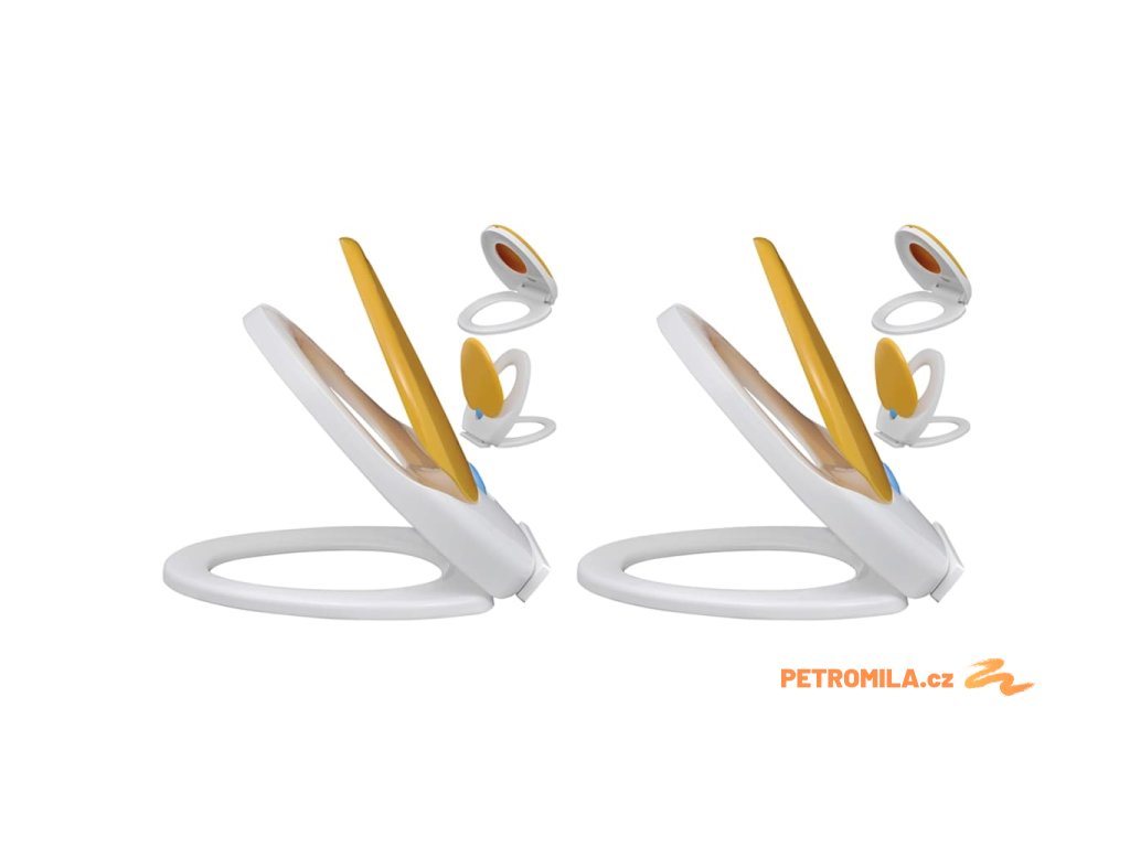 WC sedátka s funkcí pomalého sklápění 2 ks bílo-žlutá plastová