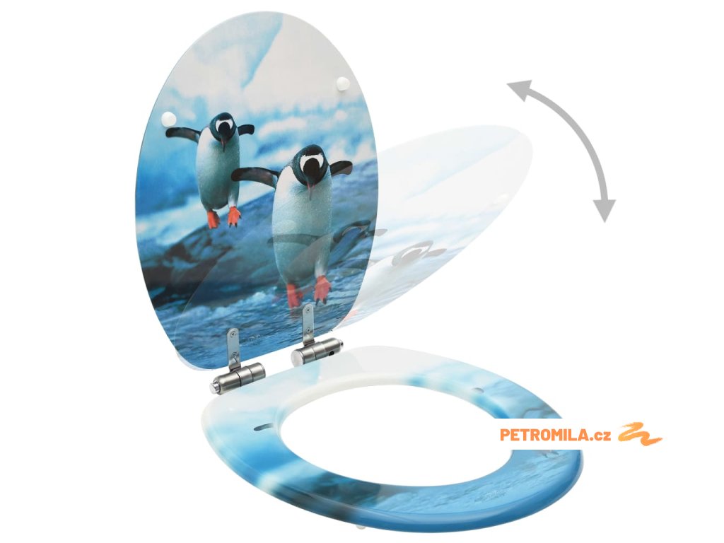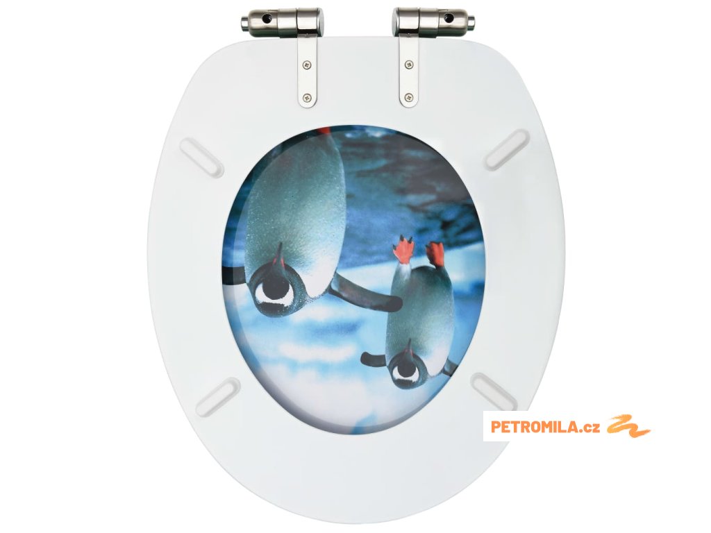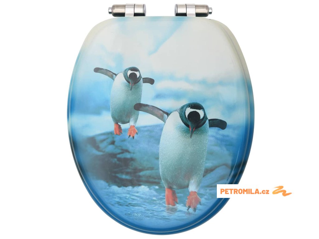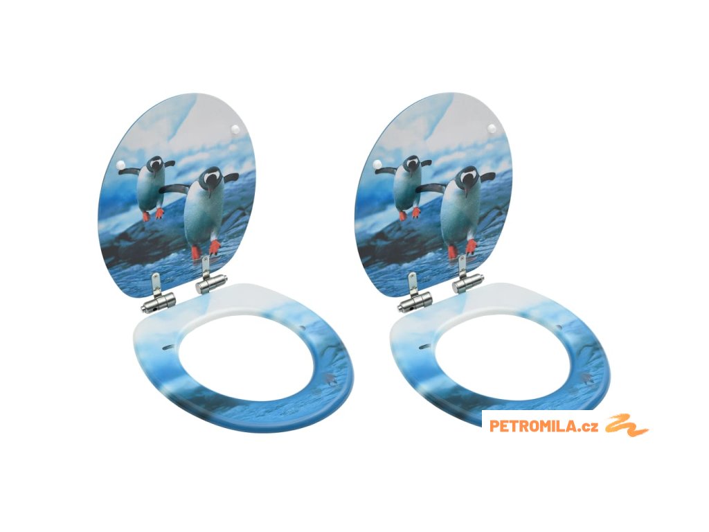 WC sedátka s funkcí pomalého sklápění 2 ks MDF motiv tučňáka