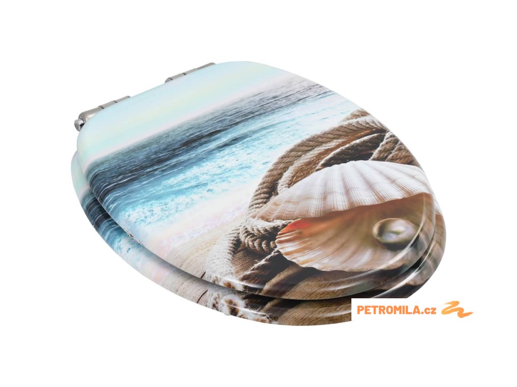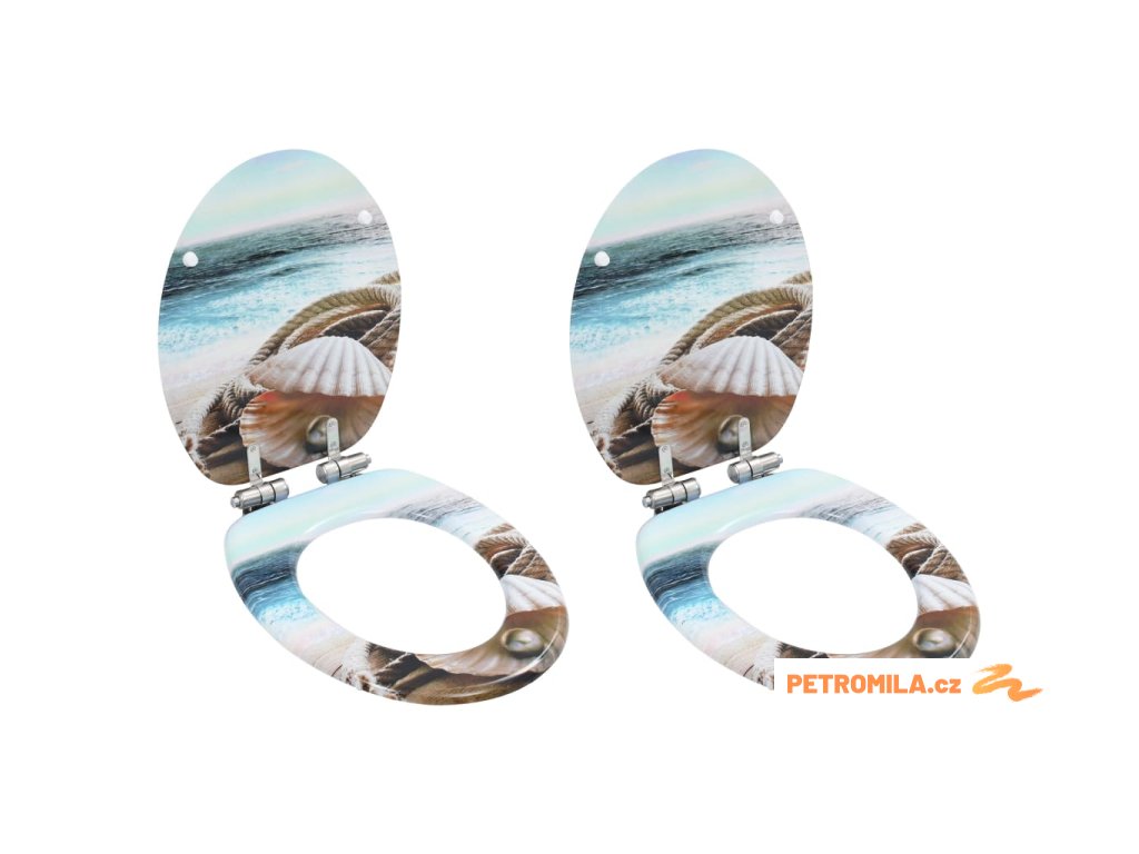 WC sedátko s funkcí pomalého sklápění 2 ks MDF motiv mušlí