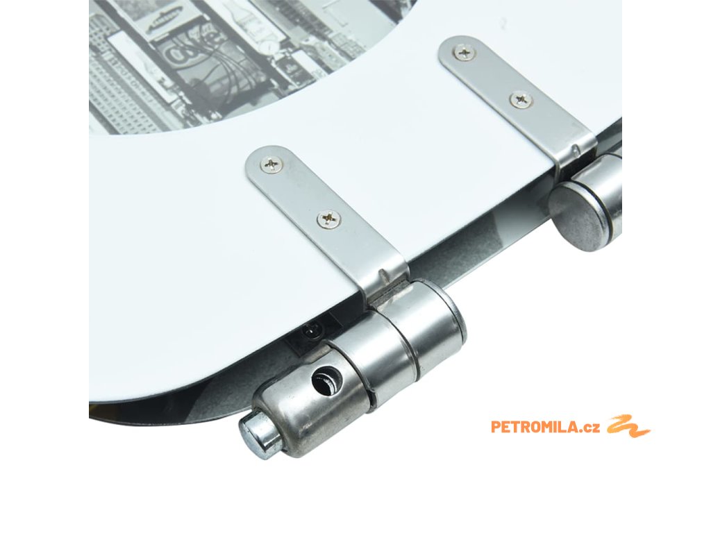 Víko a sedátko jsou zhotovena z MDF desky, takže jsou pevná a odolná. Panty jsou vyrobené z extrémně silné slitiny chromu a zinku. Toaletní prkénko disponuje funkcí pomalého sklápění, víko se tedy zavírá a otevírá pomalu a tiše, aby nedělalo přílišný hluk a vydrželo vám sloužit dlouhé roky.