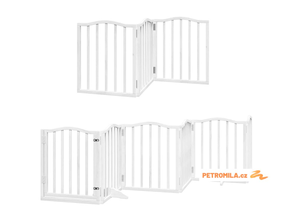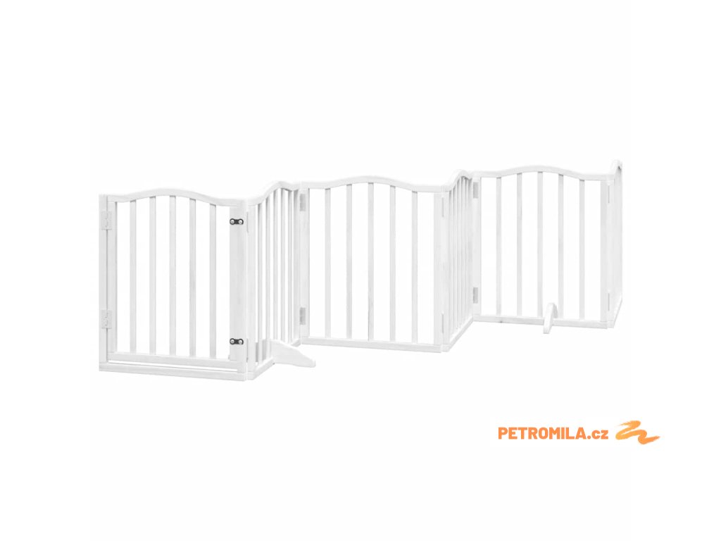 Zábrana pro psy s dvířky skládací 12 panelů bílá 600 cm topol
