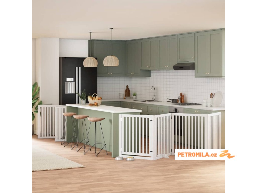 Zábrana pro psy s dvířky skládací 12 panelů bílá 960 cm topol