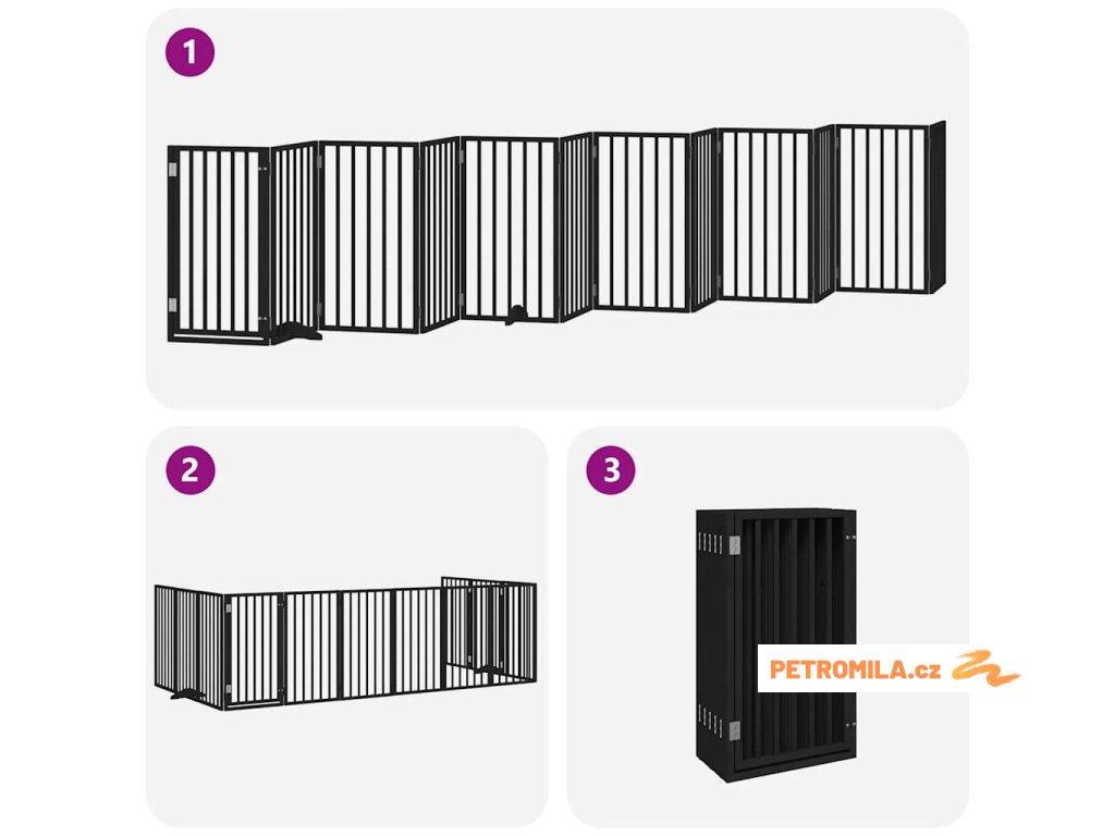 - Praktický design: Psí zábrana je vybavena dvěma pevnými nožičkami, které zajišťují stabilitu a umožňují snadné nastavení. Kromě toho obsahuje dveřní panel a je vybavena zámky, takže poskytuje větší bezpečnost i praktičnost pro vás i vaše mazlíčky.