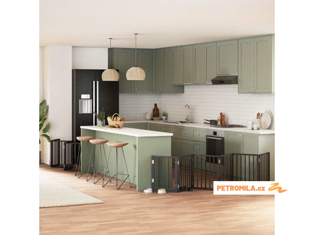 - Praktický design: Psí zábrana je vybavena dvěma pevnými nožičkami, které zajišťují stabilitu a umožňují snadné nastavení. Kromě toho obsahuje dveřní panel a je vybavena zámky, takže poskytuje větší bezpečnost i praktičnost pro vás i vaše mazlíčky.