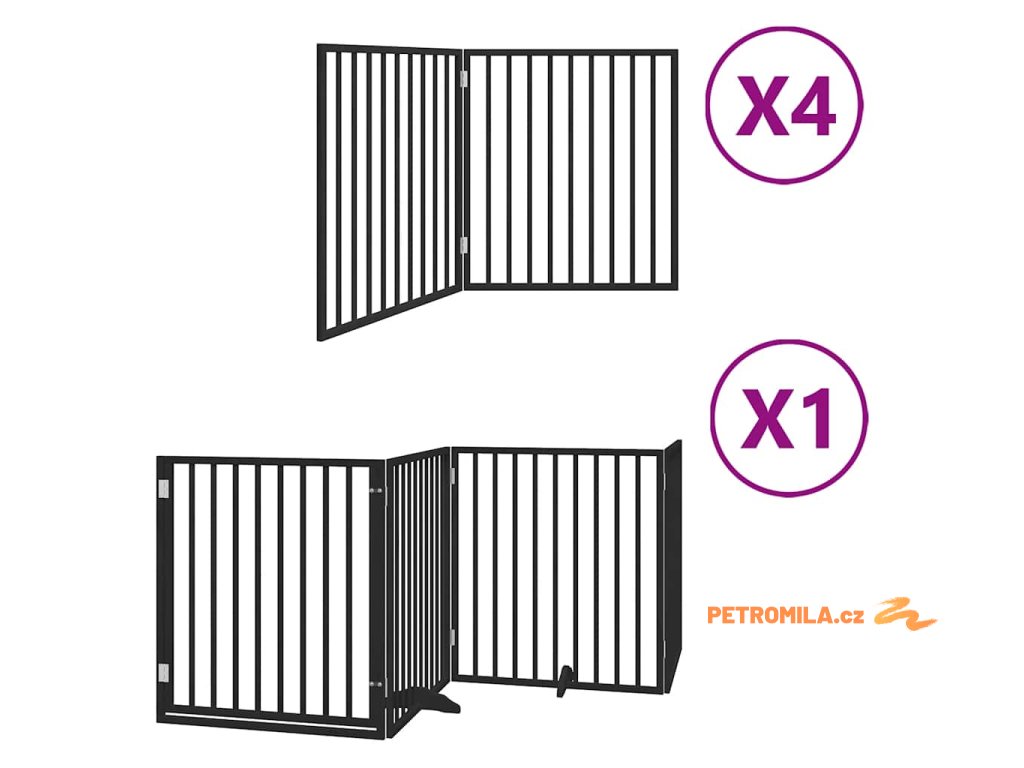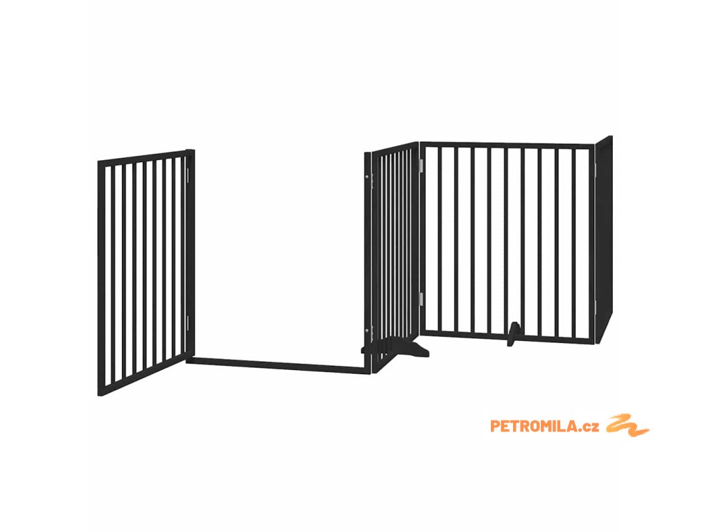 Zábrana pro psy s dvířky skládací 12 panelů černá 960 cm topol