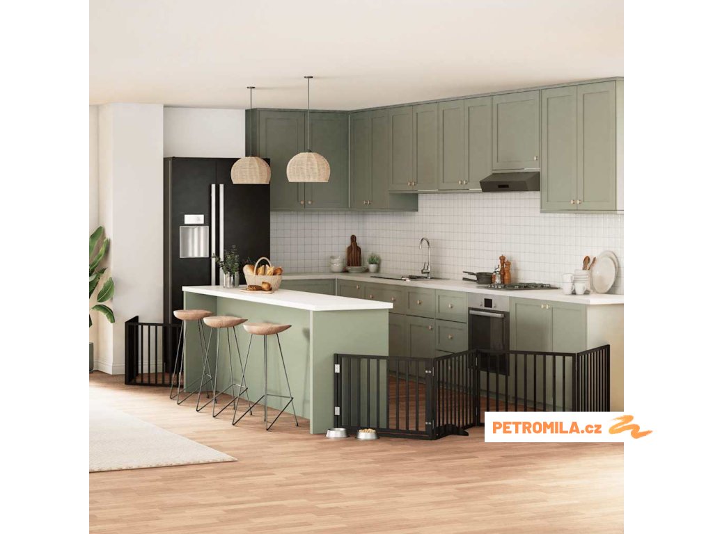 - Praktický design: Psí zábrana je vybavena dvěma pevnými nožičkami, které zajišťují stabilitu a umožňují snadné nastavení. Kromě toho obsahuje dveřní panel a je vybavena zámky, takže poskytuje větší bezpečnost i praktičnost pro vás i vaše mazlíčky.