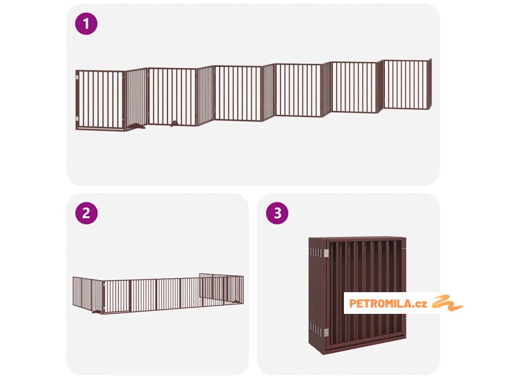 Zábrana pro psy s dvířky skládací 12 panelů hnědá 960 cm topol