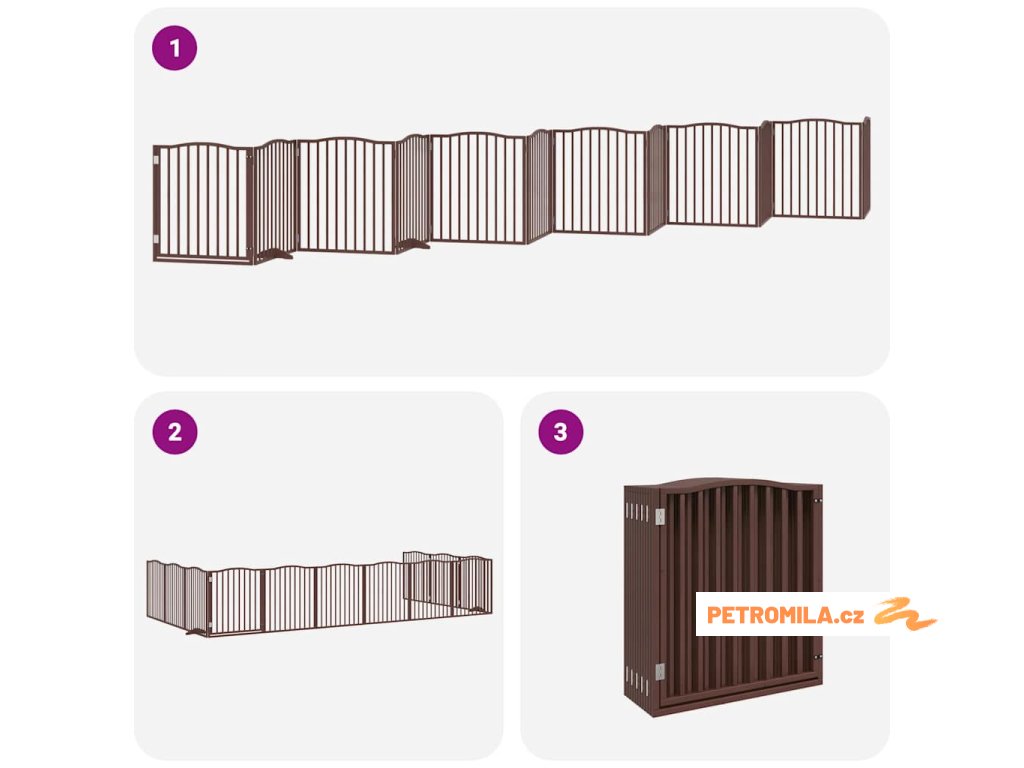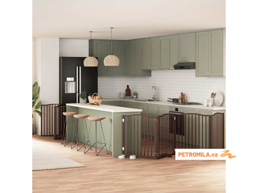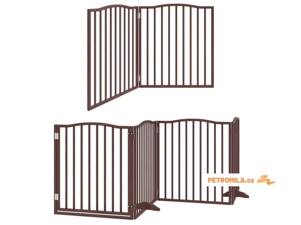 Zábrana pro psy s dvířky skládací 12 panelů hnědá 960 cm topol