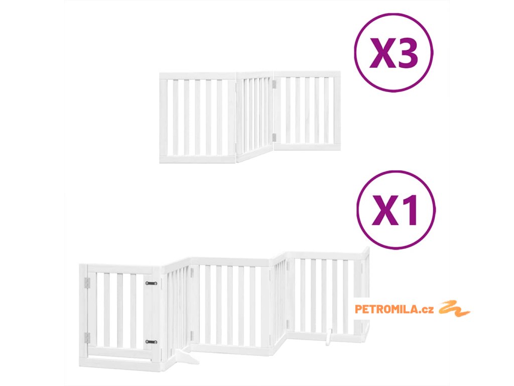 Zábrana pro psy s dvířky skládací 15 panelů bílá 750 cm topol